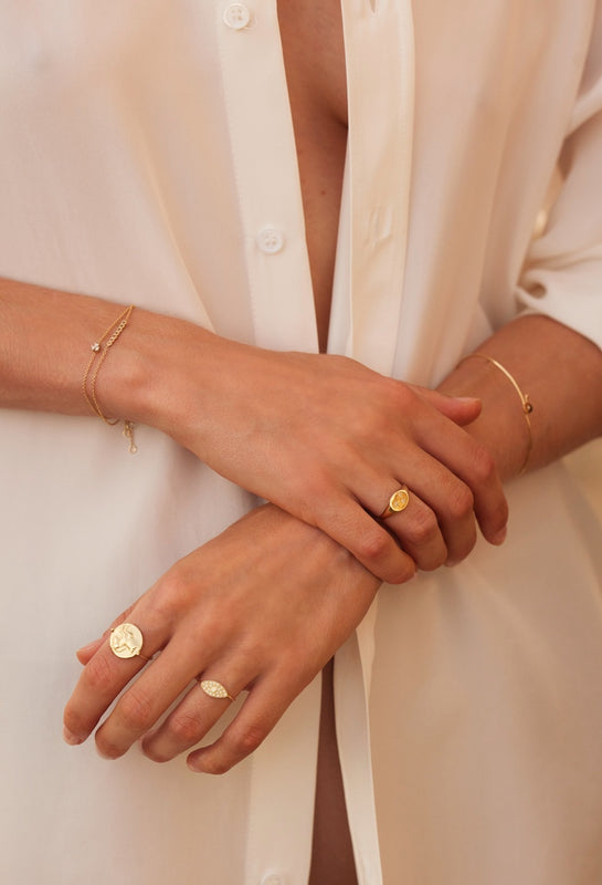 Each piece of jewellery is thoughtfully made in our Athens atelier using time-honored techniques. We are committed to sustainability —working exclusively with recycled gold, ethically sourced gemstones, and responsible production practices.