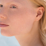 Shiny delicate hoop earrings in gold set with ten white diamonds each, the most precious of gems. Pure, simple and strong, the high vibration of the stones to feel invincible and feminine.