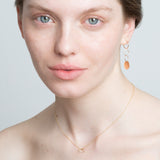 Two circles and a disk in gold, round geometric shapes drawing femininity and infinity. The meaning of the number three deals with magic, intuition and fecundity and also past, present and future. Inspired by the symbol of trinity and expressed with simplicity by three circles of filled in shapes and empty spaces interwoven together. Can be worn single or as a pair, an other option is to be mixed with the other earring design of this collection