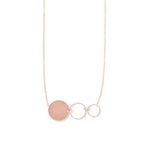 Gold circles and disk, round geometric shapes drawing femininity and infinity. The meaning of the number three deals with magic, intuition and also past, present, future. Inspired by the simplicity and the trinity symbol by expressing it through three circles, filled in shapes and empty spaces, interwoven together!