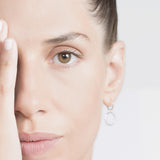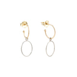 A white and a yellow gold circles interwoven together. Round geometric shapes drawing femininity and infinity to connect you with your own poetry.