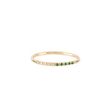 Sparkling delicate ring in gold set with white diamonds and emeralds, the most precious of gems. Allow the high vibration of the stones to make you shine and feel fully divine!