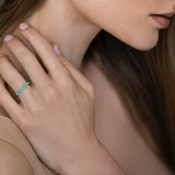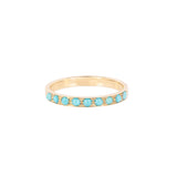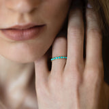 Nine vibrant sky-blue turquoise stones, set in a ring band in gold, and their protective powers to connect with your own magic and healing force